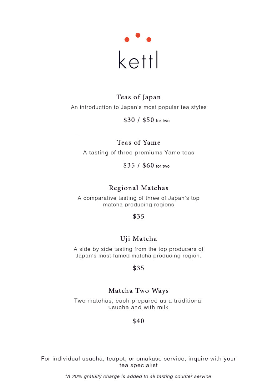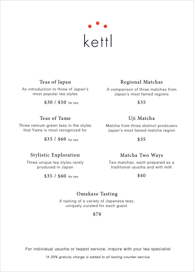 Kettl Greenpoint is our flagship café in the heart of North Brooklyn. The space showcases a curated catalog of loose teas, matcha, and ceramics, offering guests a direct connection to the world of Japanese tea. The café features to-go service, a communal table for shared experiences, and a six-seat tasting counter dedicated to deeper exploration.